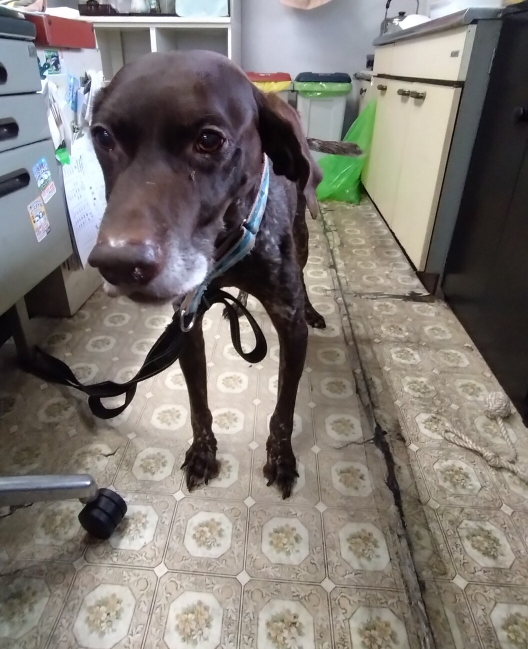 最近もう 暑くて暑くて エアコンが効かないので 同伴出社しています みなさん可愛いがってくださるので ありがたい 床を剥がすのは やめてえ