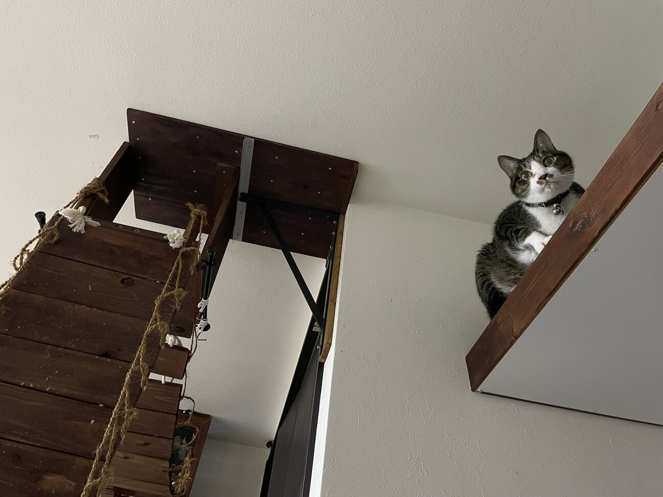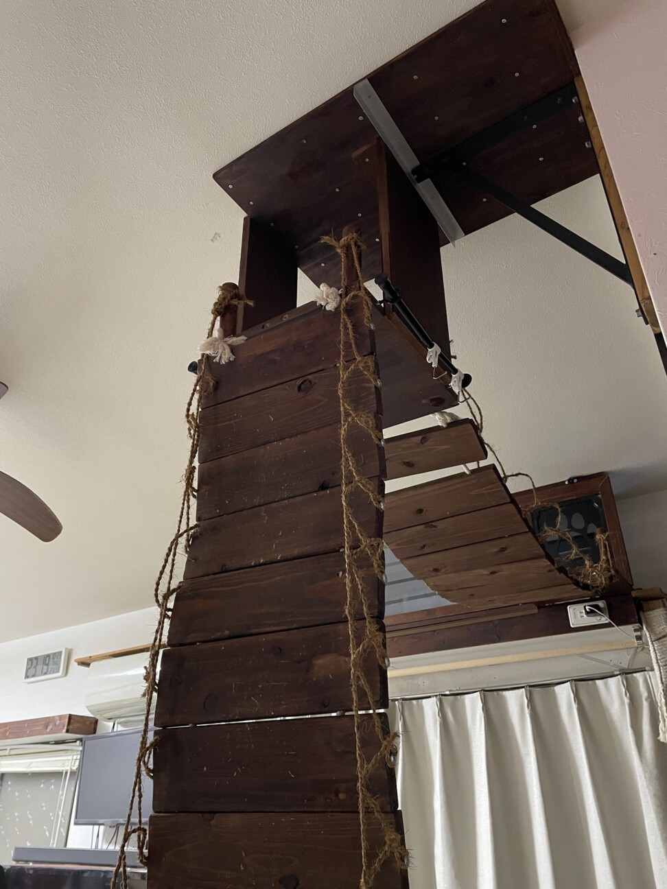 ロープをくくっている根元がかなりガクガクして来てはいたのですが、皆んながまどかさんくらい小さくて可愛い猫さん達なら持ったかもしれないけど、まどかさん以外はまあまあ大きな猫しかいませんのでねw