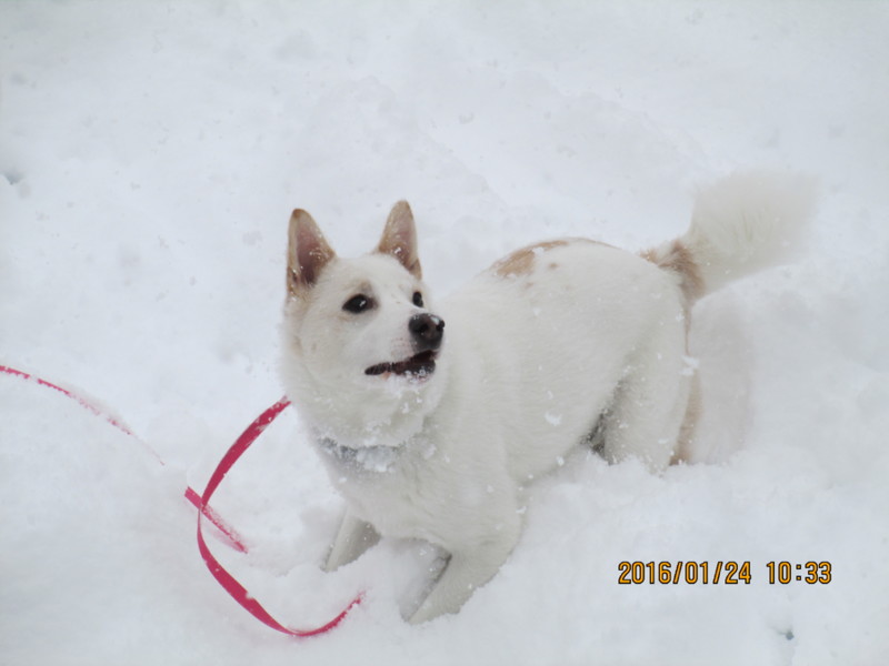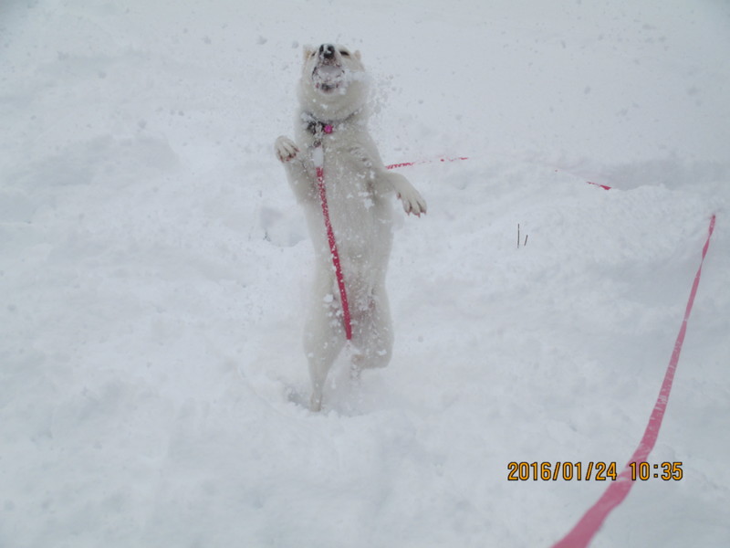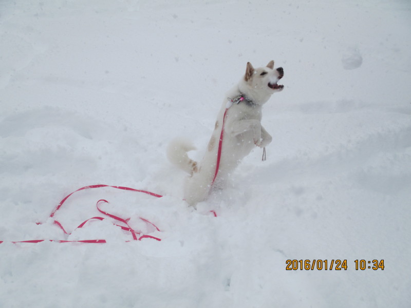 水分の多い雪なので、雪のボールを遠くに投げるとズボッズボッと動きにくそうに追いかけていきます。