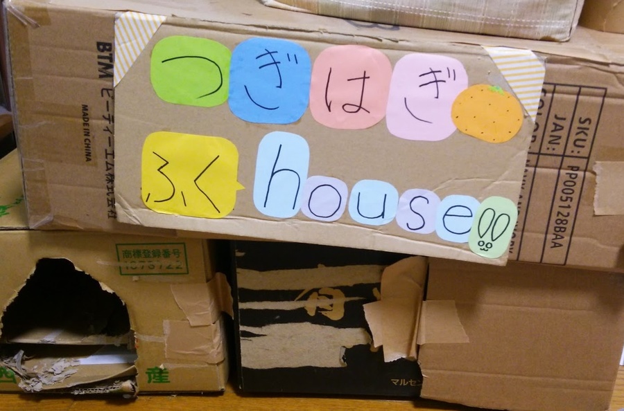 ふくちゃんが暴れて良い部屋として、段ボールハウスを作りましたが、増設に増設を重ね2階建てになってます。