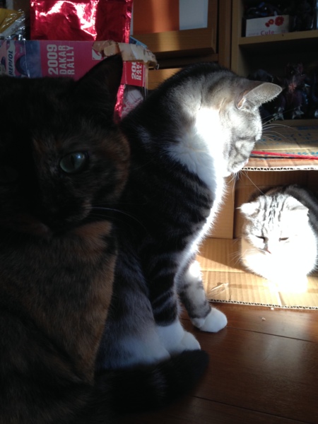 光を反射するようなホワイトコートの持ち主のぴかちゃん。 本当に輝いて見えます(^^) …密かにカメラ目線のぶさこさんも気になる1枚です。