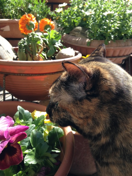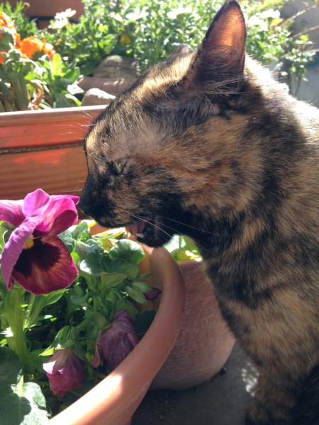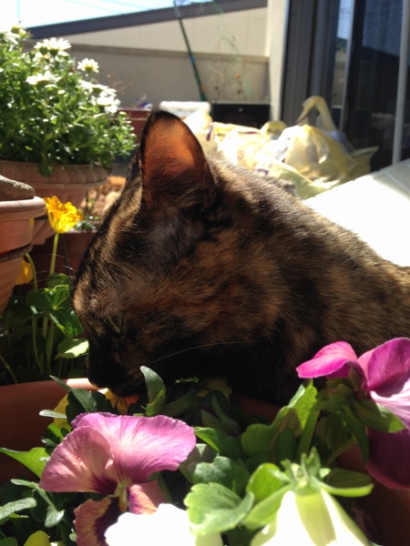 恋する乙女のぶさこさん♡ 花が良く似合うますね(*´`) やっぱり乙女にはお花…って、葉っぱかじってるやん!!( ̄□ ̄;)!!