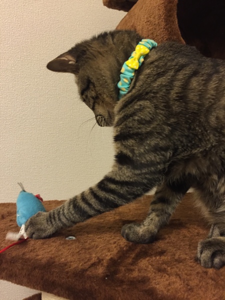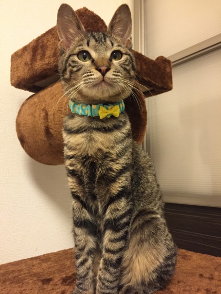 だいぶ大きくなったとはいえ、首回りはまだ細いので今回もシュシュタイプ。