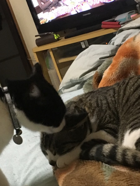 うちの長男ギンちゃん、去勢しました。コハクは避妊してるので去勢する必要無いかとも思ったけど後々の事を考えて手術することに踏み切りました(泣) 帰ってきてまだ少し麻酔のせいかウトウトしているギンをコハクが舐め舐め^ ^ コハクはギンを気遣ってるのかな? ギンももう9ヶ月になり大きさは少しコハクより大きいかも‼️ 2人とも仲良く長生きしてくださいm(__)m