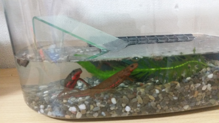 先日、某サバイバルゲームフィールド内でイモリを保護。 危ないから一時避難のつもりが情が湧いて… そうこうしてる内に卵を産みはじめちゃったよ 仮設ゲージから本格アクアリウムに移し替えてあげないとなぁ