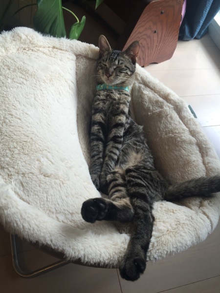 新しい椅子(猫専用!)購入しました!ドイツのKERBIというメーカーのーものです。ハンモック型 を探して検索していたのですがなかなかおしゃれなものがなく、、、正確にはハンモックではないけど底がないタイプで体重を預けてリラックスできるタイプです。楽チンそうで何よりカッコよくセレブ感が気に入って笑 購入しました。ご本人様が気に入ってくれるか心配でしたが、即くつろいで気持ちよさそうにしているので安心しました!いや極楽のご様子でございます、、、羨ましい、、、