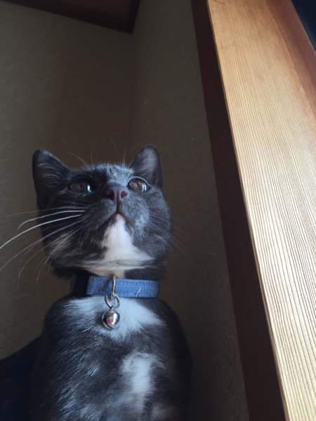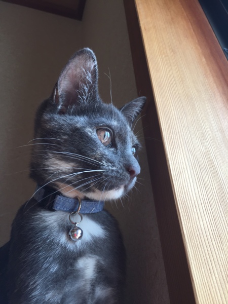 窓の外を眺め黄昏れている様子です。 娘が撮影しました。やはり私よりもうまいかも。