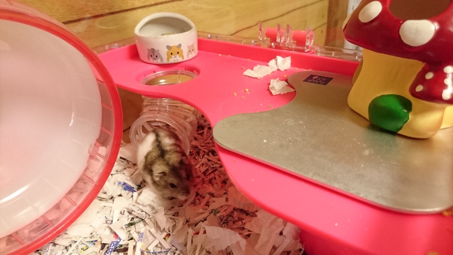 ケージは、頂いた時のままに、床材もそのままで、私や家族の臭いや声を覚えてもらっています。