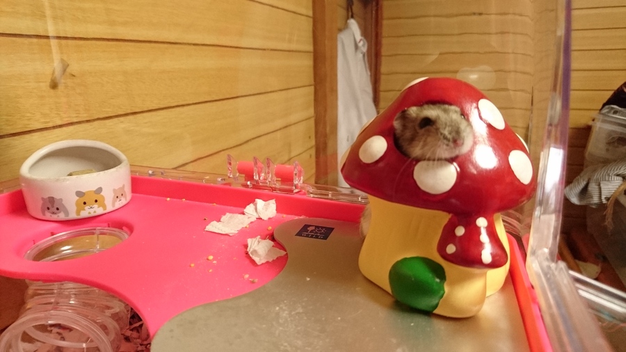 警戒心が強いクゥちゃんということでしたが、フレンドリーな一面もあり、『クゥちゃん』と呼べば、キノコのお家にいると、天窓から顔を覗かせてくれます。その表情がとっても可愛いです❤