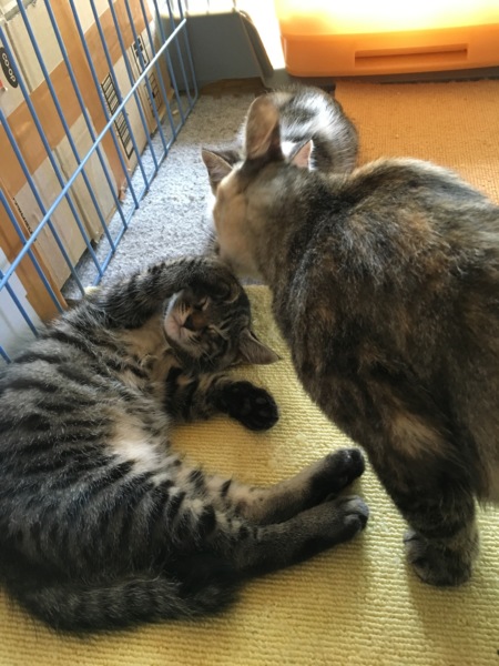 写真2:プ子とポコ。トラ柄とサビ柄、正面からではなかなか気づきづらい差です