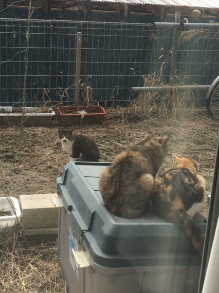 写真3:野良猫時代の1枚。姉妹猫も他の猫も季節のせいか来ませんね