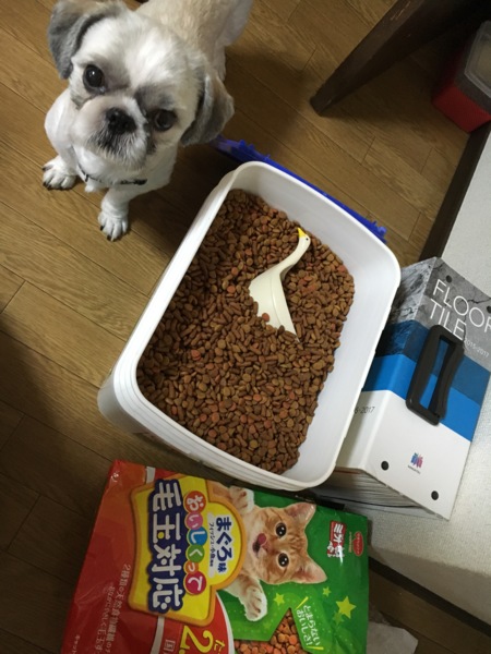 ジジちゃんは餌の袋があると、お腹が空いていなくても破って開けてしまいます。