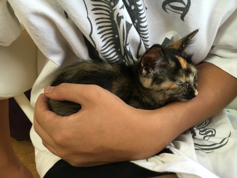 画像3は長男が来てくれて抱っこされてウトウトのキキちゃん。