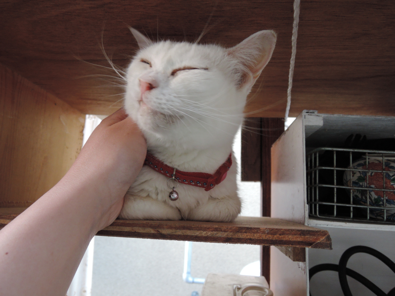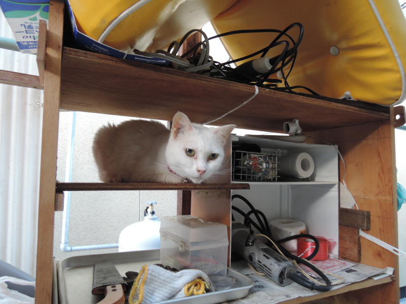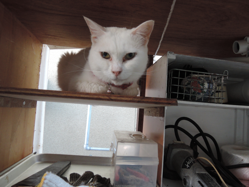 彼女は、裏の物置小屋の棚にのぼりここで日向ぼっこをすることが大好きでした。