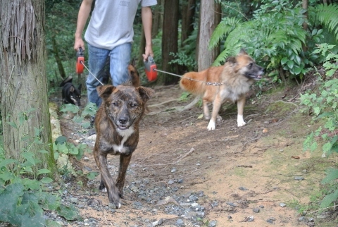 9月15日のラピスとゲン君 森のお散歩からご帰還中です ラピスも来季はディスクドッグ・デビューを目指しますよ~