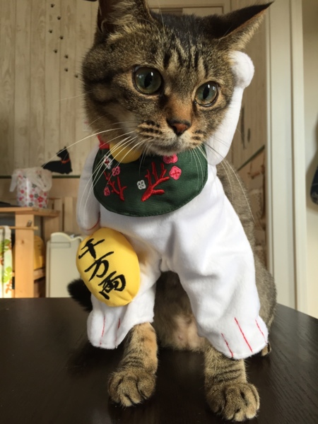 近所のイオンがリニューアルオープンしたので 行ってみましたo(^▽^)o プラプラしてたら ペットコーナーにコスプレが(≧∇≦) 我が家にも招き猫が欲しいぞ❗️これはミミ様用。 そして学ランも❗️我が家の不良、キーちゃん用。 ミミ様は大人しく着てくれたけど いつの間にか一番デッカくなってしまったキーちゃんは 入りませんでした(^◇^;) おぅ、かなりの無駄遣い(笑)