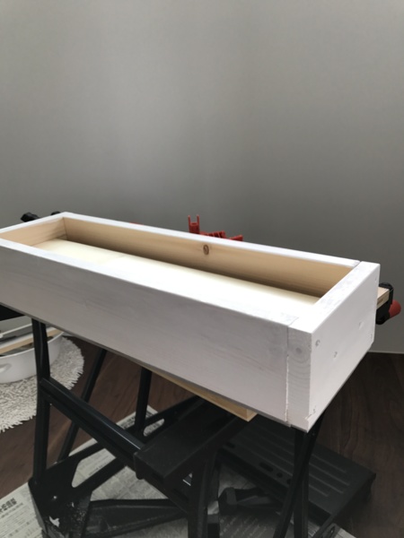しばらくはそのまま使っていたのですが、別のDIYで白いペンキを使ったのでインテリアに合うようについでに白く塗装。