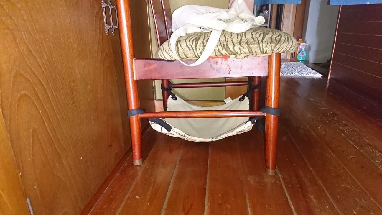 我が家には、この椅子しかハンモックを取り付けできる所がないので、