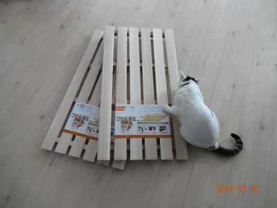 私たちは猫の登り口としてスノコの一部を切り取りましたが、