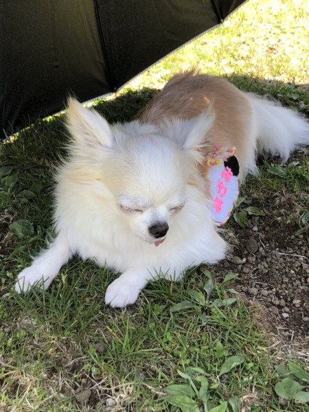 あざみは初めてランで私達から離れて行動したり、こちらがびっくりするほど動いていて本当に楽しそうでした。お天気良すぎて、途中でバテたけど日陰に入れないあざみは主人に日傘に入れて貰い落ち着いたみたいです。