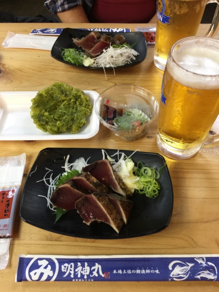 早速、ひろめ市場で名物と生ビール!