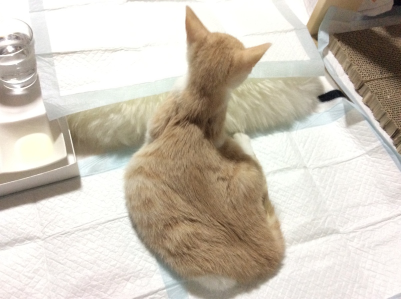 夜、30分ほど外出した際に私を追いかけてなのか、戻ったら部屋のドア付近までぶんちゃんがおしっこまき散らしながら移動していた。まだそんなに動けることに驚いた。