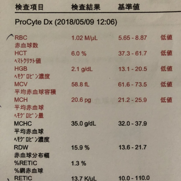 「貧血の影響かわからんけど、他にも数値は上がったり下がったりしてるし…このままなら他の内臓にも影響出てくるし…私なら今からでも直ぐに輸血する」