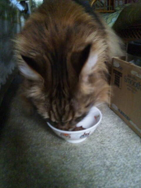 その間、体重は10.7kgから10.43kgに減少。普通サイズの猫だったら3日ほどでここまで減少するのは命に係わる数値かもしれませんが、大型猫だからまだ許せる範囲内。今朝の体重測定ではラキサトーンの影響もあってかまだ10.53kgまでしか体重が戻っていません。