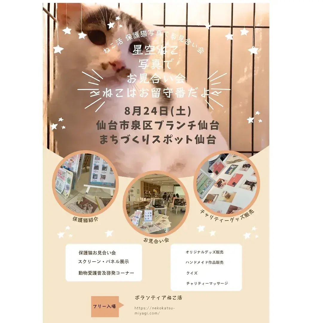 明日は仙台市泉区ブランチ仙台まちづくりスポット仙台にて☆星空ねこお見合い会☆を開催いたします。