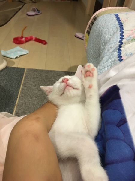 キングとライトも体重が1キロを超えたので、そろそろかとワクチン接種に行きました。 次の日キングの様子がおかしい。 いきなり吐きました。 すると、吐いたもののなかにニョロニョロ 白い細長いものが5.6匹見つかりました。 とりあえずゲージに隔離して、次の日病院に行くと猫回虫と判明。 キングもライトとブロードラインを塗布してもらいました。 その後キングが2〜3度吐きだしましたが、便からはでませんでした。 あれから一週間。落ち着いています。 来週もう一度塗布しにいって、20日頃にもう一度ワクチンです。 お金はかかるけど、元気に過ごしてくれるのは嬉しいです。