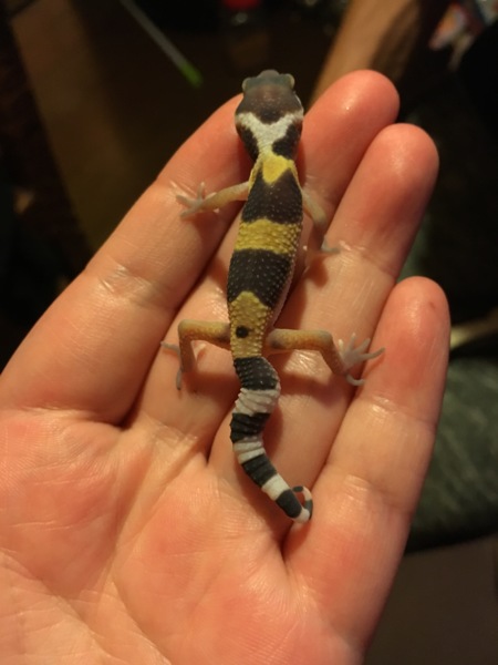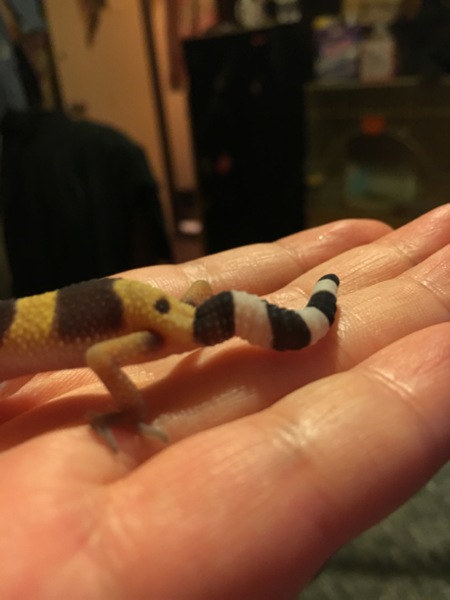 昨日産まれた マイケルときゃらめるの赤ちゃん。 観察していると、尻尾の付け根から くの字に曲がってるのが気になりました。 もしかしたら奇形なのかな?とか 小さい卵から出てきたから、 丸まってたろうしその名残でまだ 曲がってるだけかな?とか考え、、、 赤ちゃんはこの子だけだし、 見比べる子もおらず 調べてみたら奇形みたいです(´・_・`) 無事に育ってくれる事を祈ります。 生きていくのに支障はないのかな?