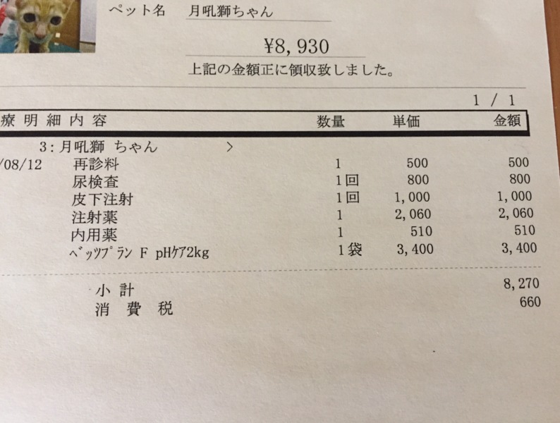 という事で、今日は抗生剤の注射と止血の飲み薬(逆だったかも!)と療養食が処方され、また2週間後に受診です。